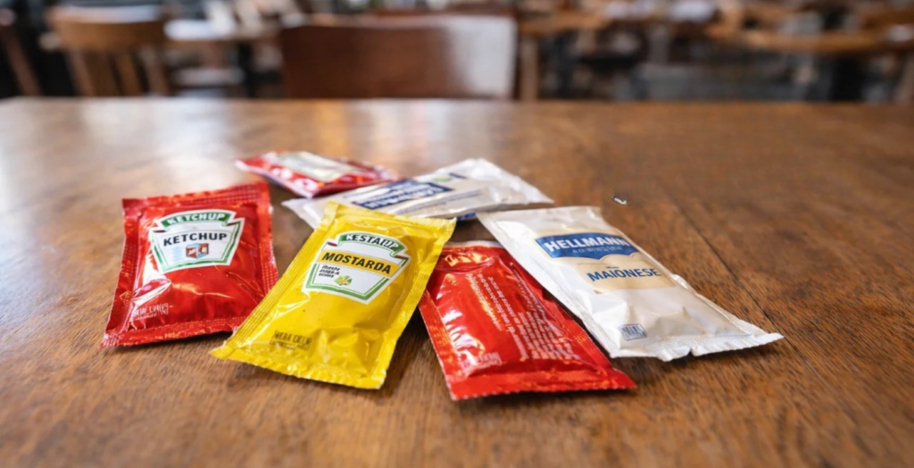União Europeia proíbe sachês de condimentos em bares e restaurantes a partir de 2026.